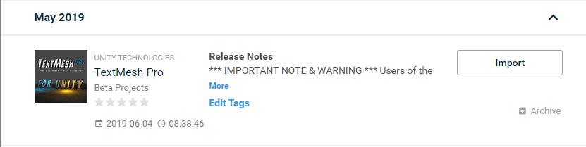 - You may download and install TextMesh Pro directly from the Unity store if you are using an older version.